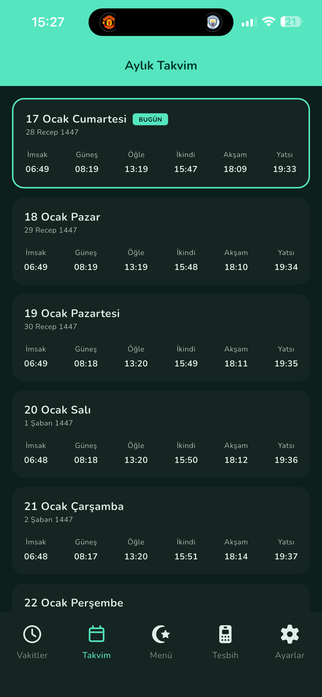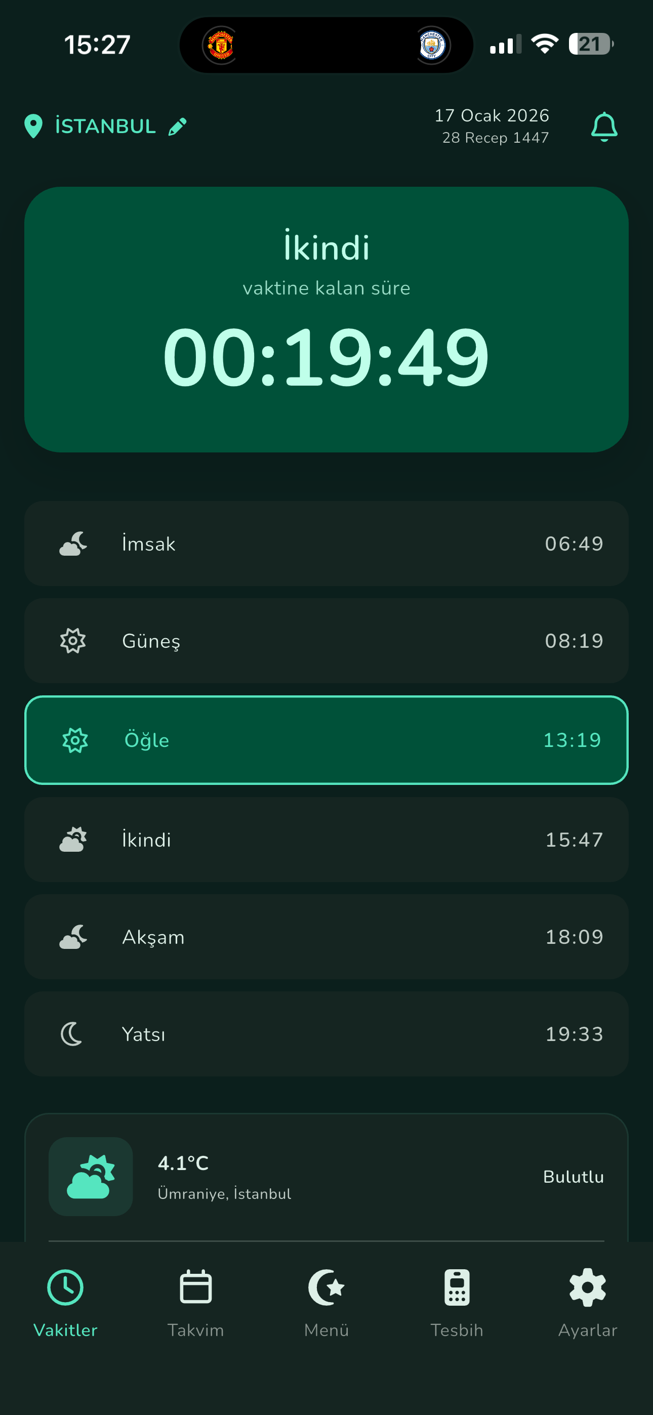 Ezan sesleri, önceden hatırlatma ve pil dostu arka plan servisi ile hiçbir vakti kaçırmayın.